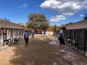 Tja es ist ein Versuch dem neuen Gesetz gerecht zu werden. Leider sind die Tiere –meistens einzeln – in ‚Gehegen‘ untergebracht. Der ‚Fortschritt‘ ist in dieser temporären Station, dass es etwas Schutz vor der Sonne gibt und die meisten der Hunde nicht mehr an der Kette liegen wie das vorher auf diesem Platz der Fall war.